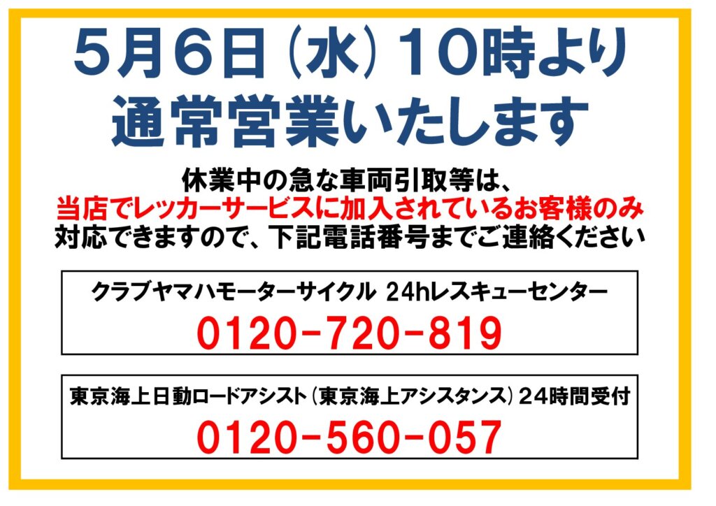 ゴールデンウィーク休業のお知らせ